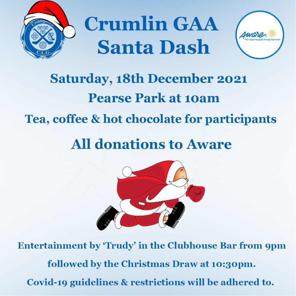 That means it’s time for our annual 3km charity Santa Dash! This year’s Santa Dash is in memory of ex-player Darragh King and all monies received will be donated to Aware.