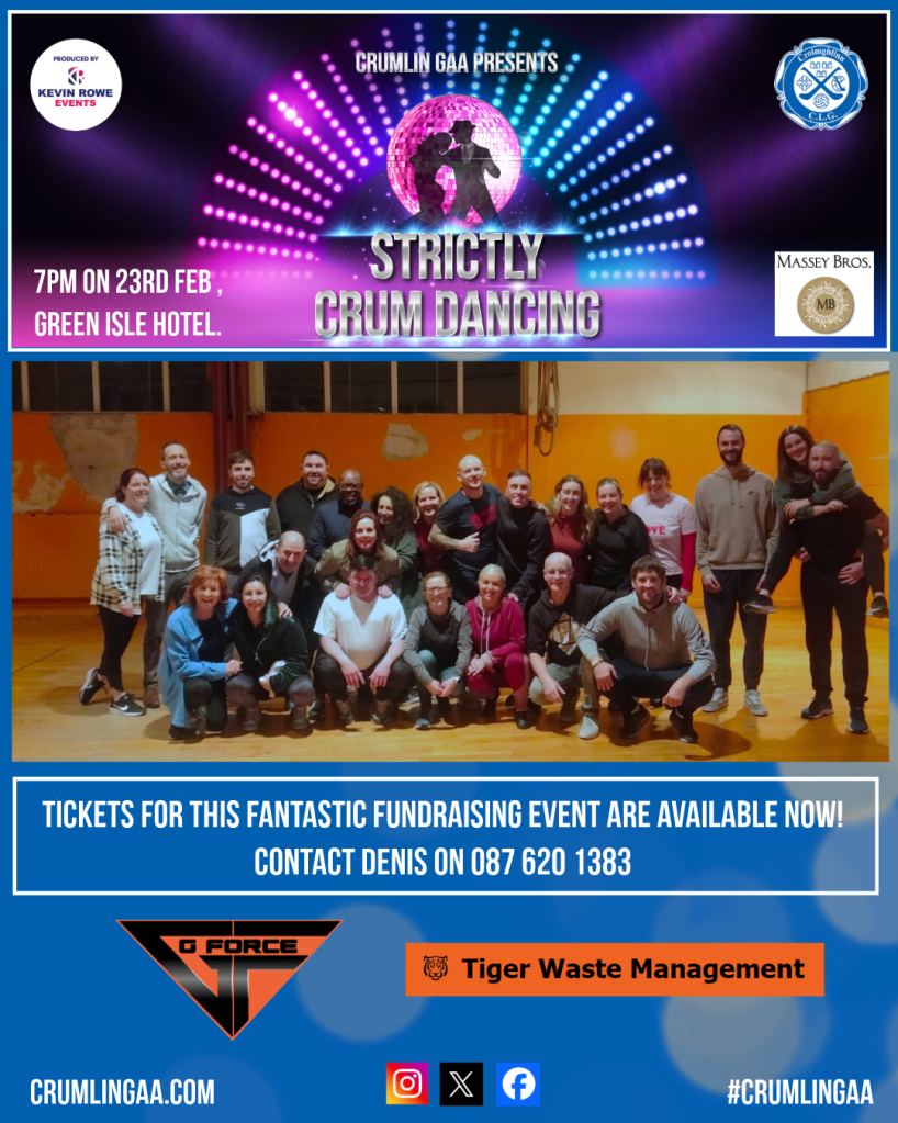 Strictly Crum Dancing is on the 23rd February in the Green Isle Hotel, Naas Road. The show starts at 7pm and tickets are priced at €35 per person.