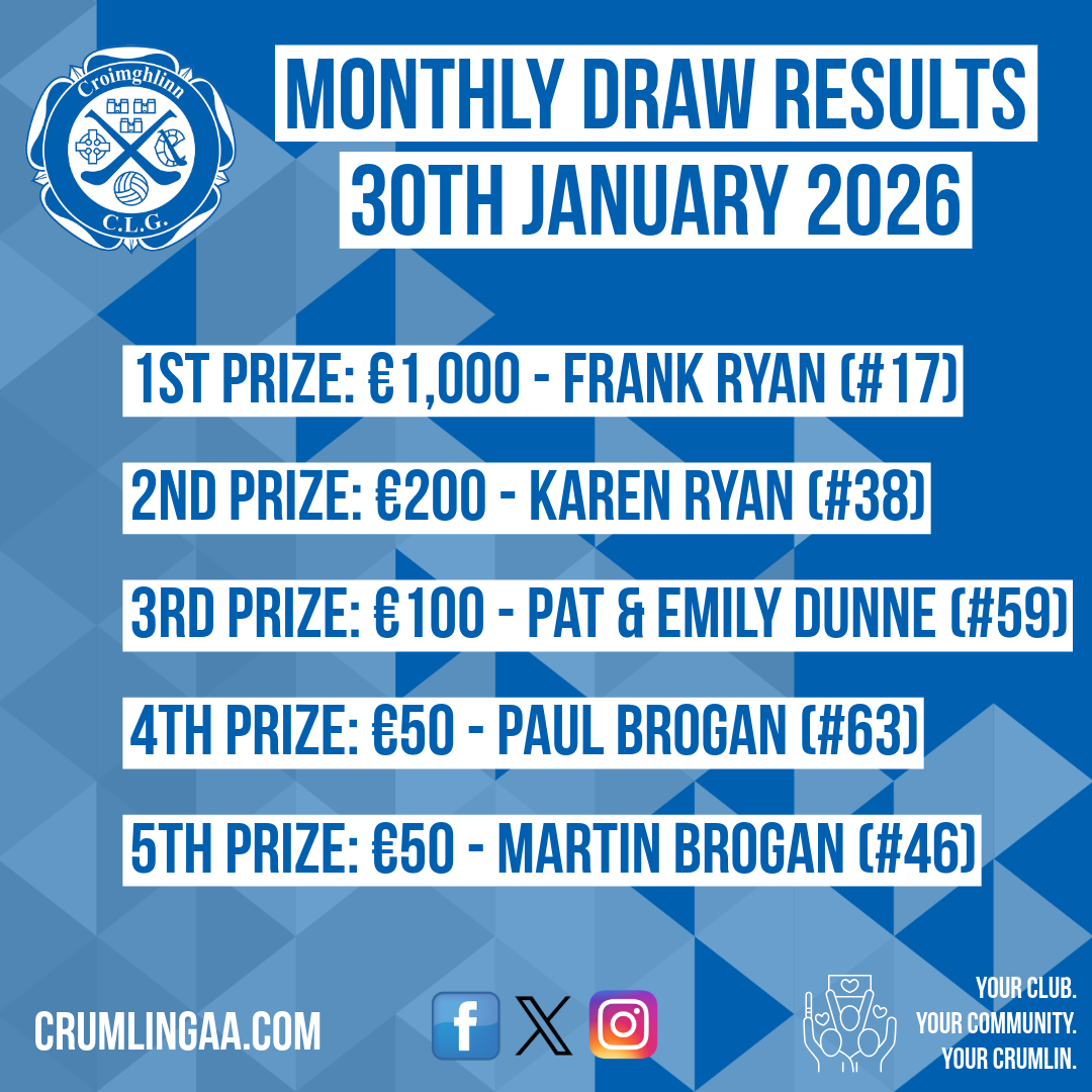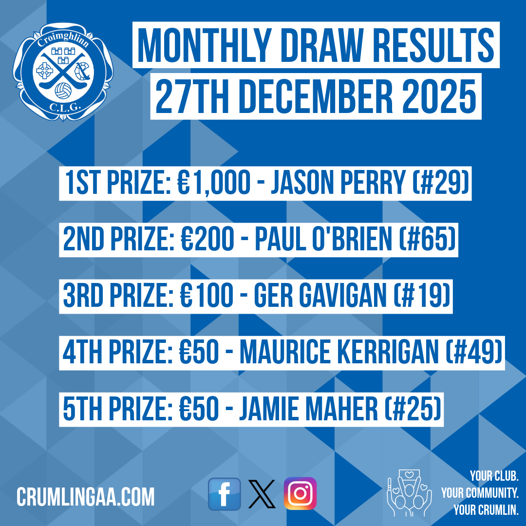 Crumlin GAA Monthly Draw Results: