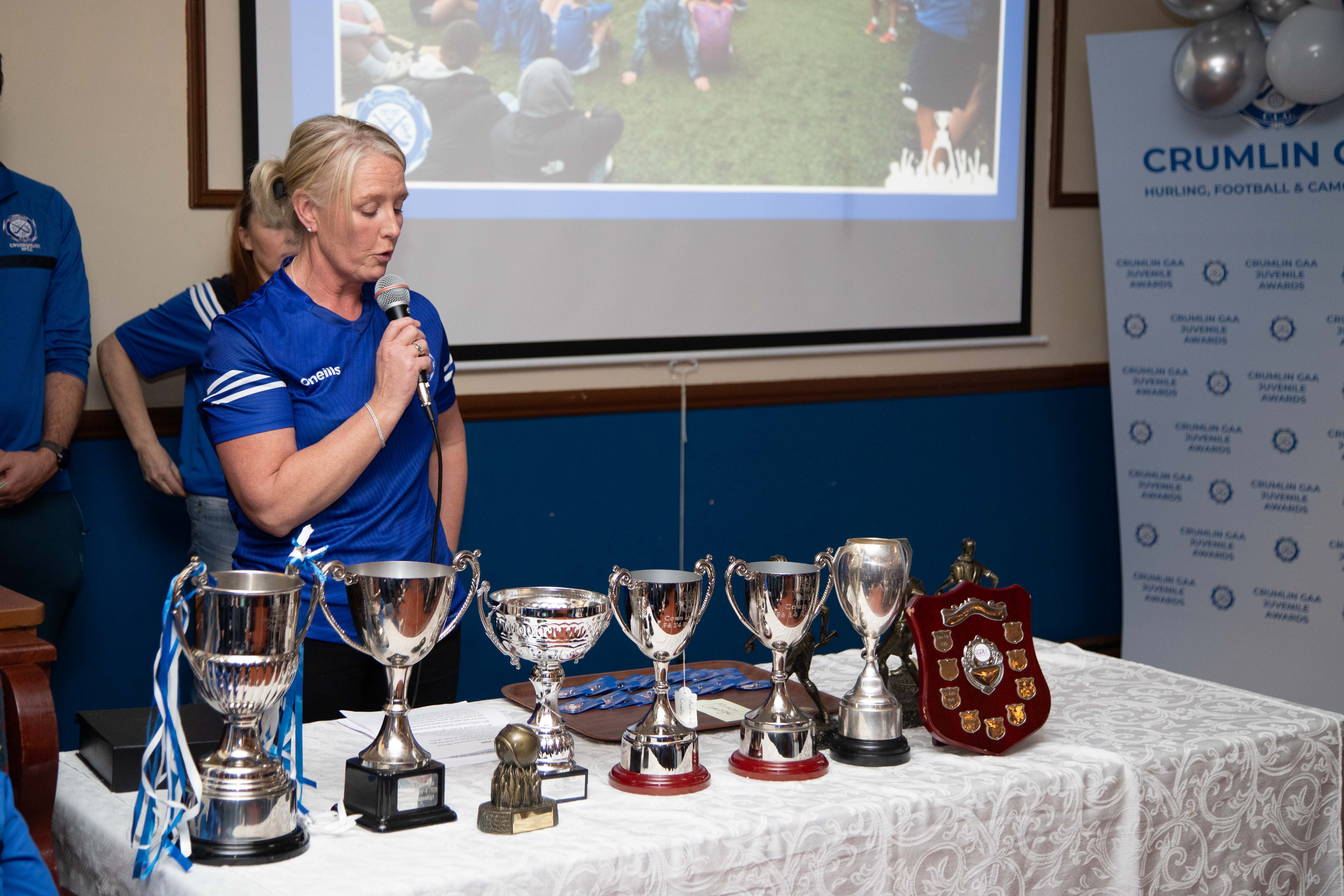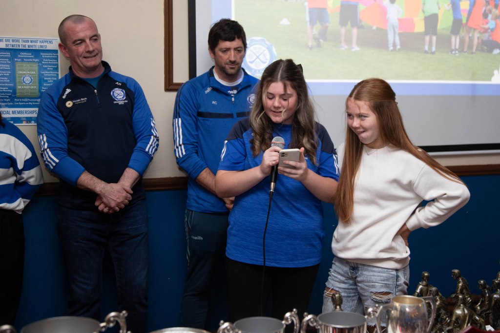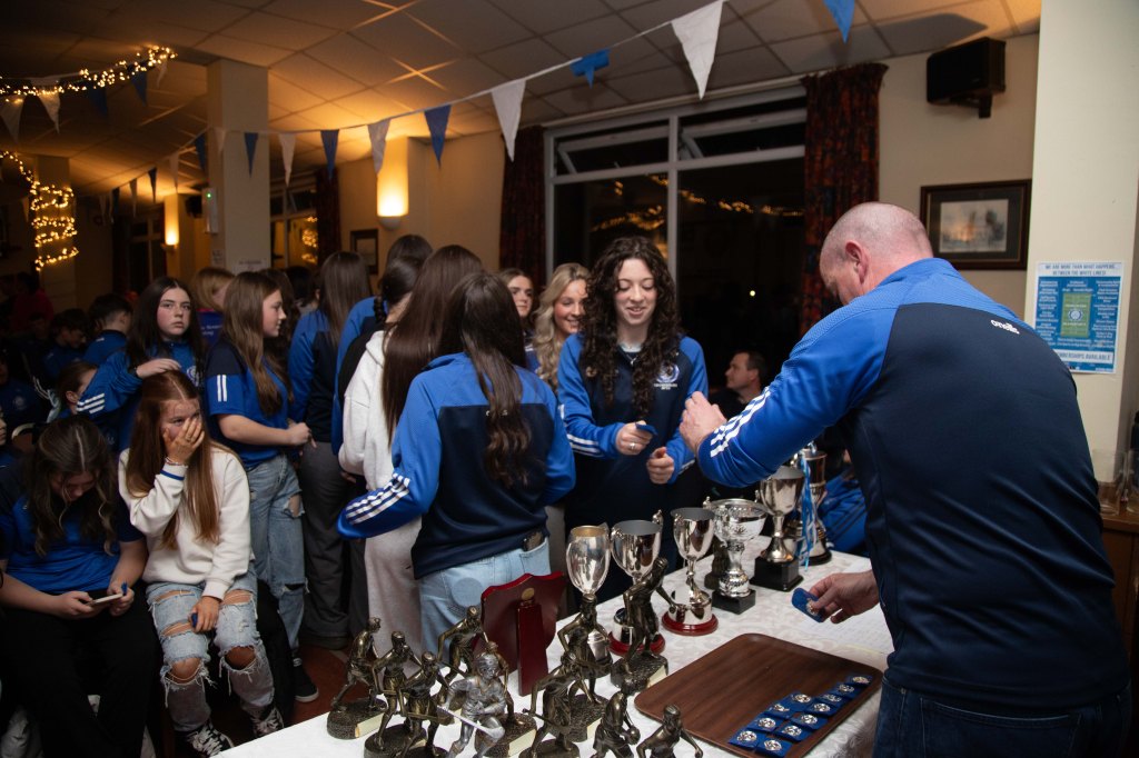 There was a fantastic turnout from players, coaches and parents which led to a lovely, happy atmosphere in our Halla na nÓg. The hall was the best we have ever seen it so we would like to thank all the members of our Juvenile Events Committee for their ideas, time & hard work in preparing it so well for the day. We would also like to thank our MC for both award sessions, Alan Ryan who kept the day running smoothly and on time. Lastly, thank you to Crumlin & Dublin Camogie star Abby Ryan who was on hand to present all our winners with their awards.